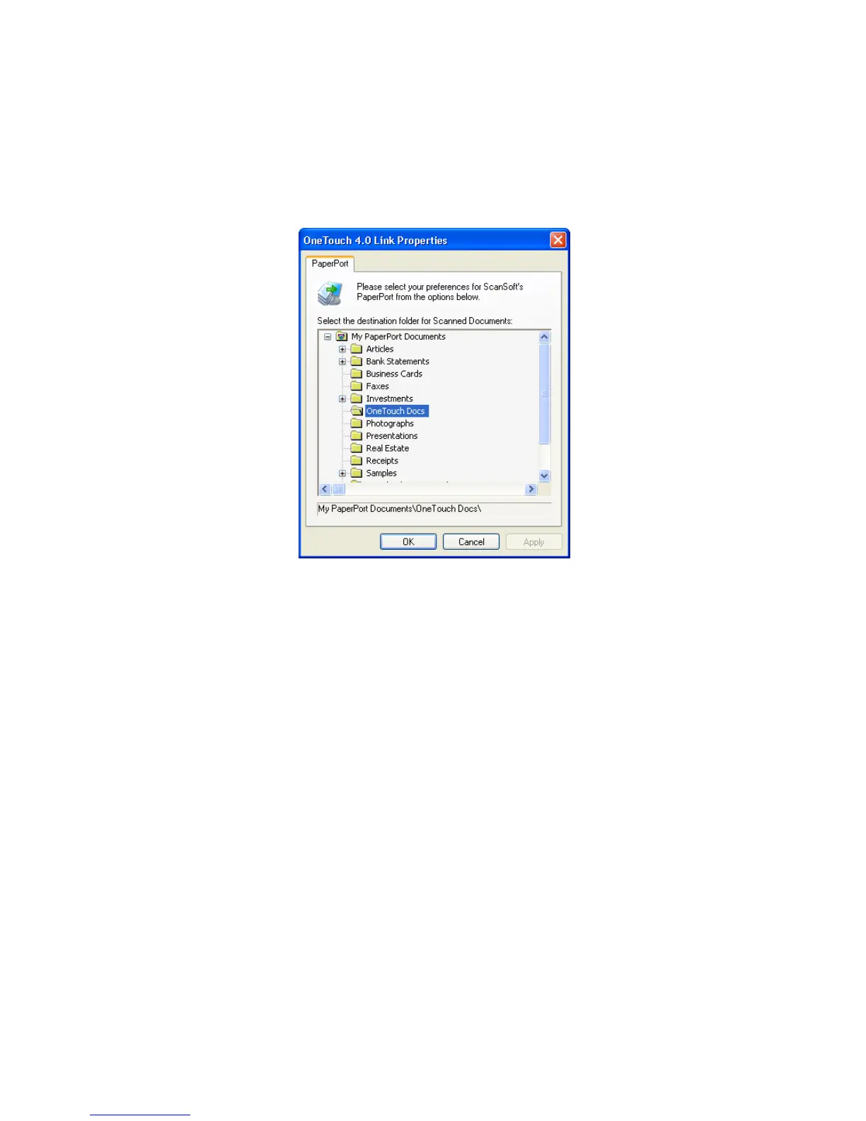 These properties apply to PaperPort, and are for designating the folder