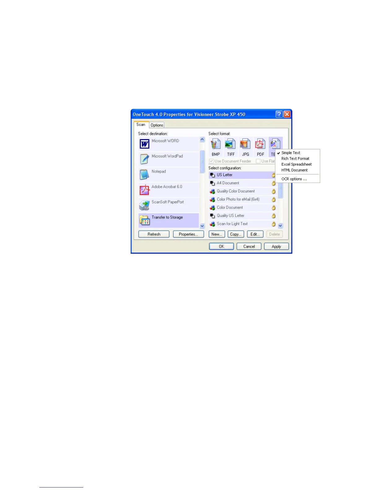 choose a text format for the scanned images.