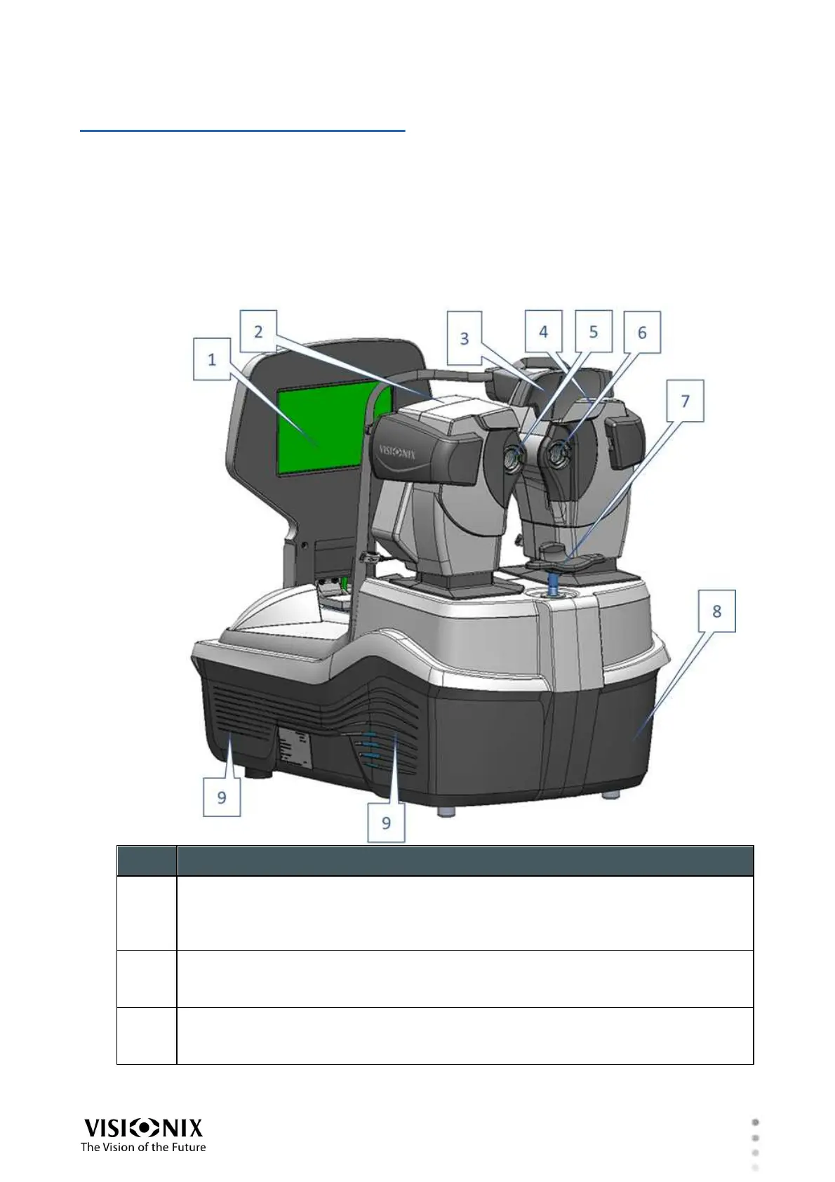 contact, such as the phoropter apertures and the forehead support. Opposite it is the rear