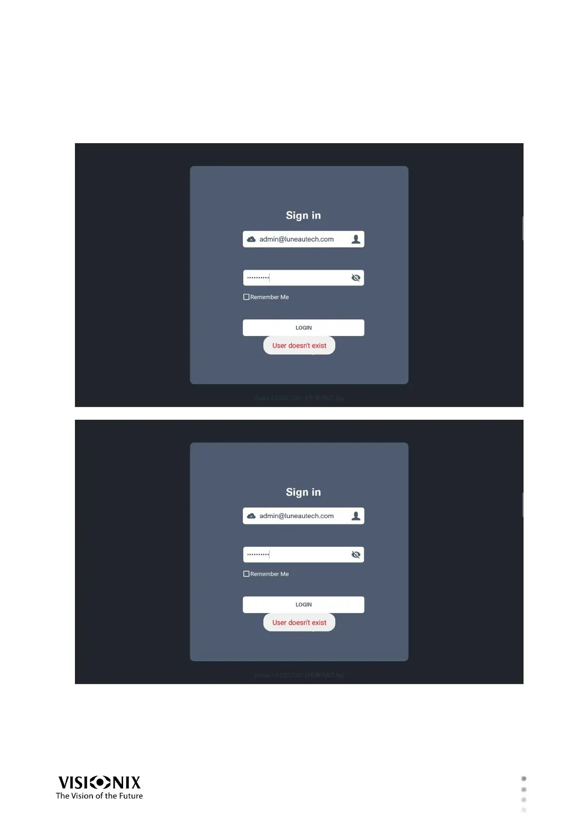 Visionix EyeRefract - Login Failure