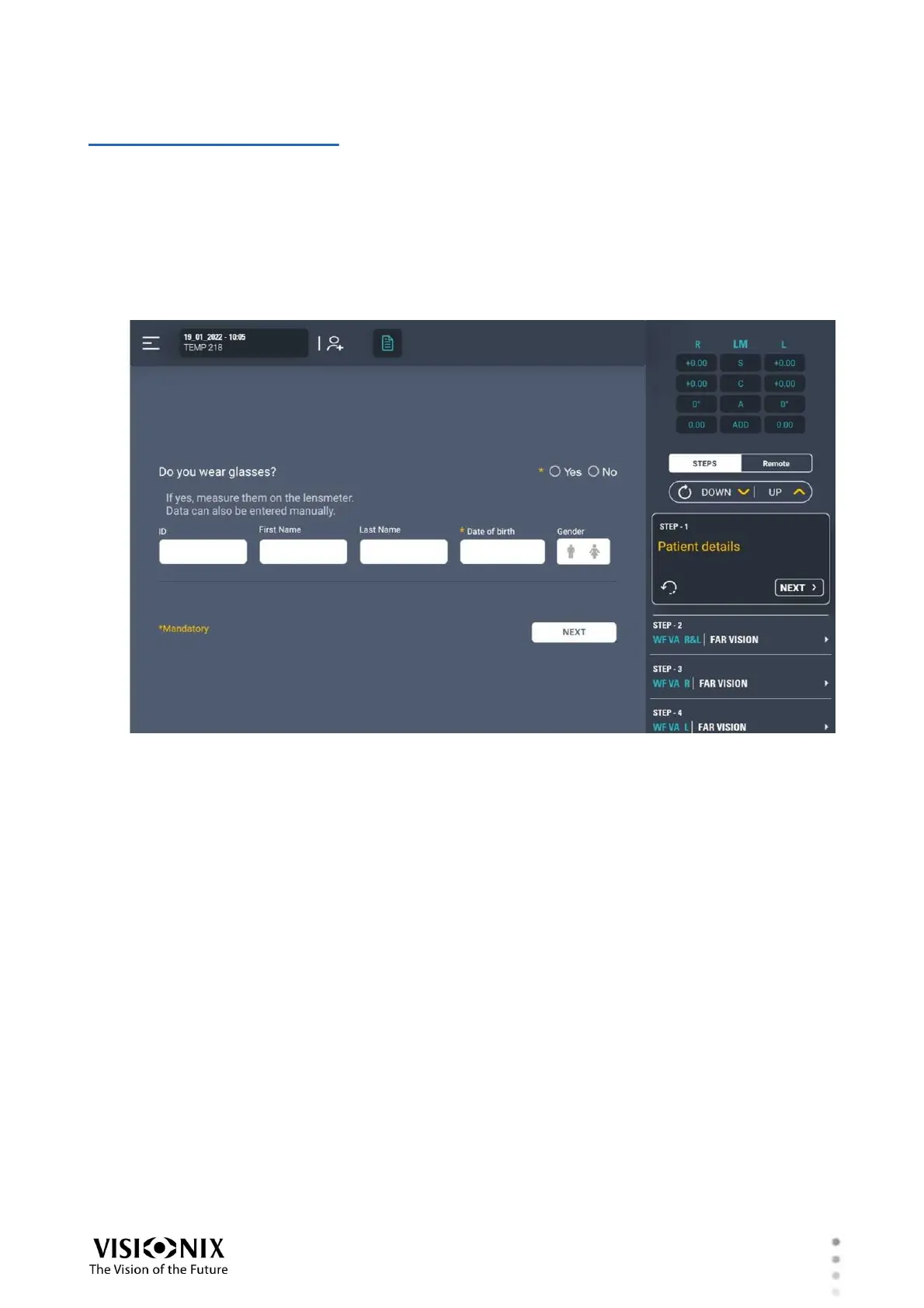 The question screen requires filling in the patient's details. The mandatory filled's depends on