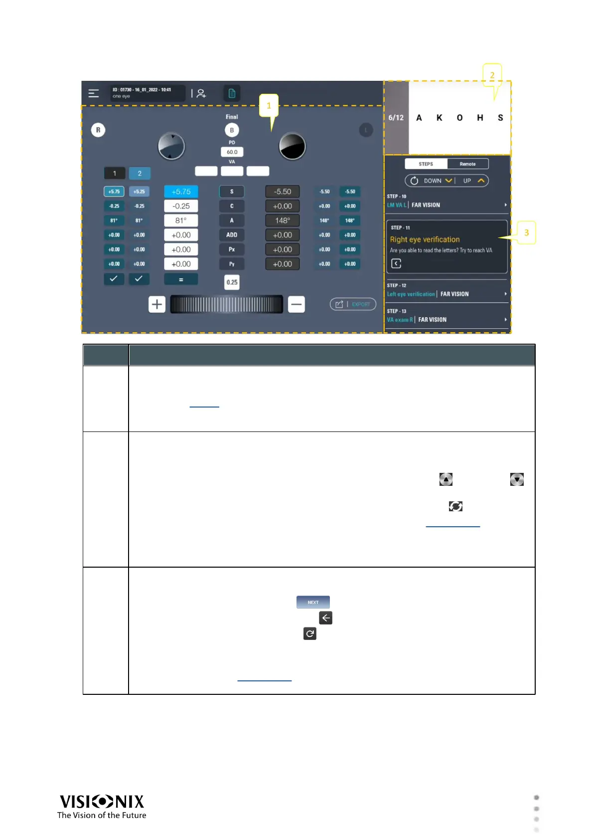 To increase or decrease the size of the optotypes, tap the up ( )and down ( )