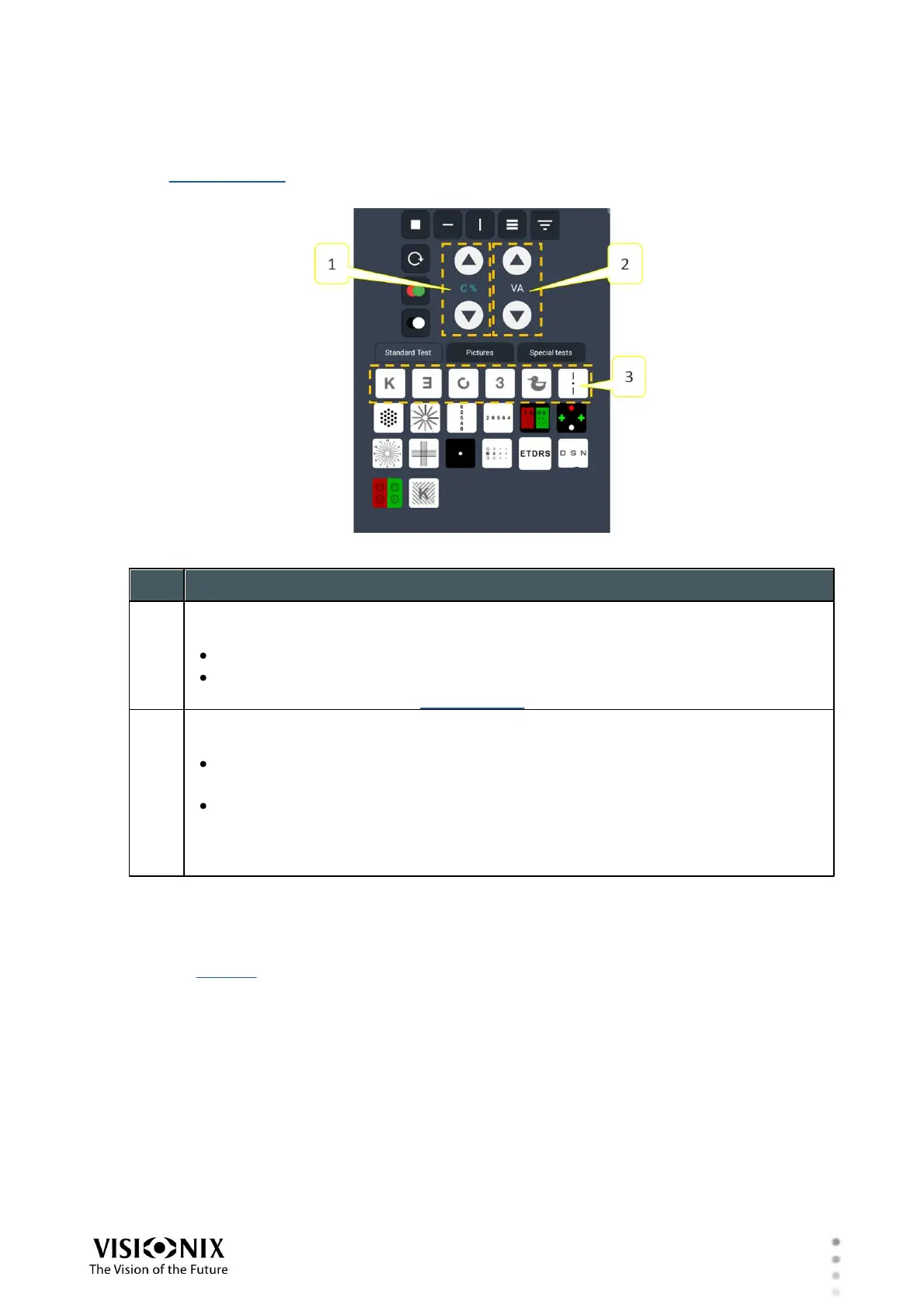 When optotype charts are selected (any of the options in #3 in the illustration below), contrast