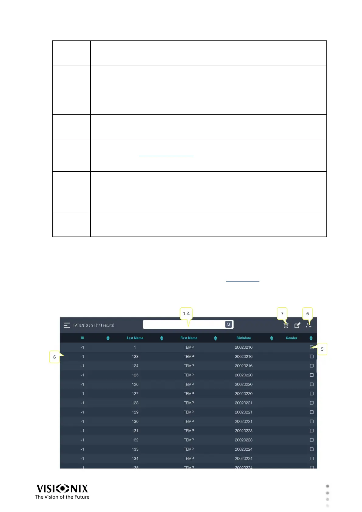 patient records currently included in the database. It enables you to find existing records by