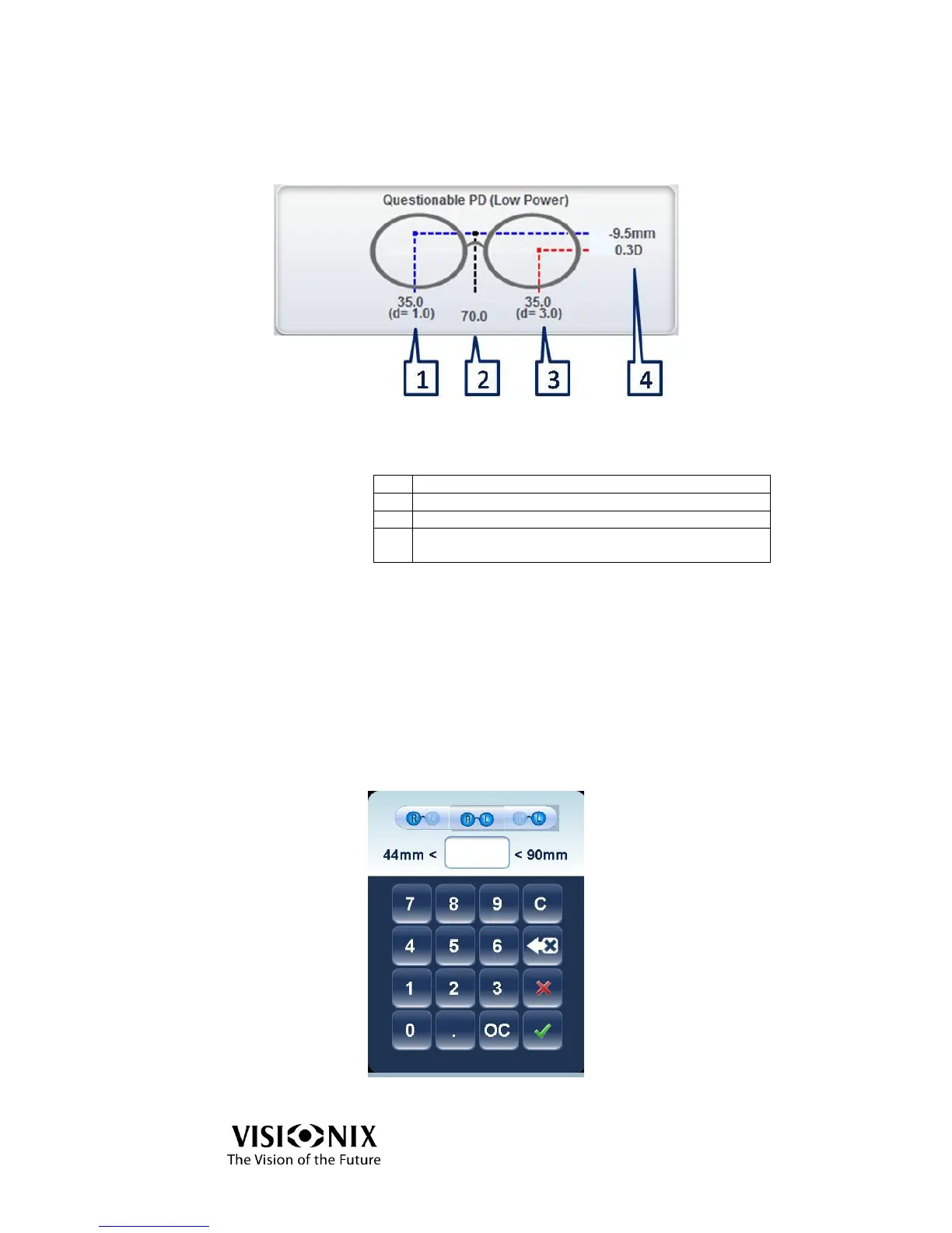 The net vertical prism displays the equivalent prismatic power in mm. It appears at