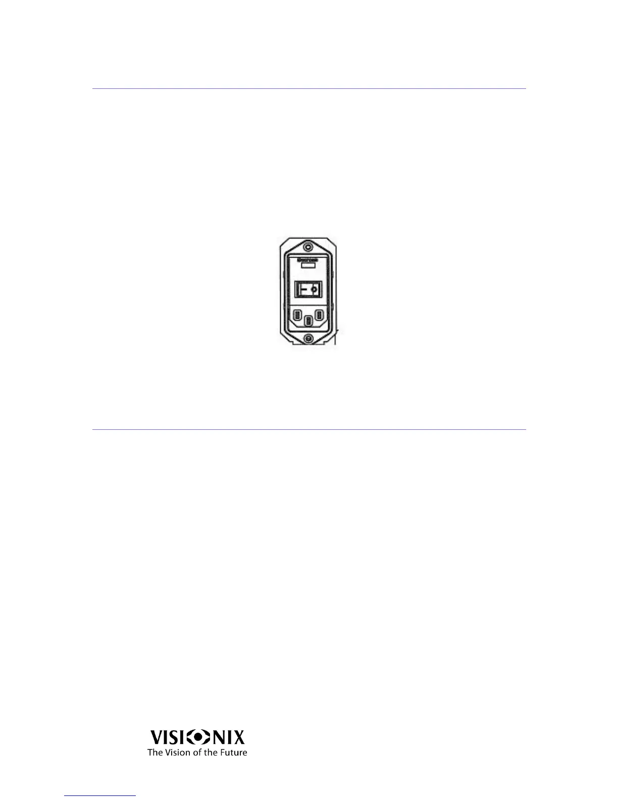 The fuse holder is mounted above the power switch at the rear of the VX40.