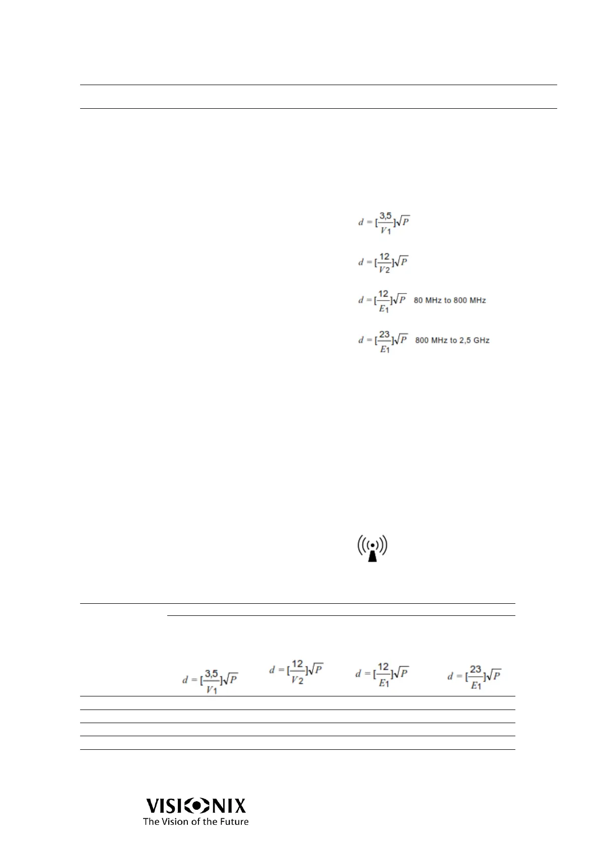 Recommended separation distances between portable and mobile RF