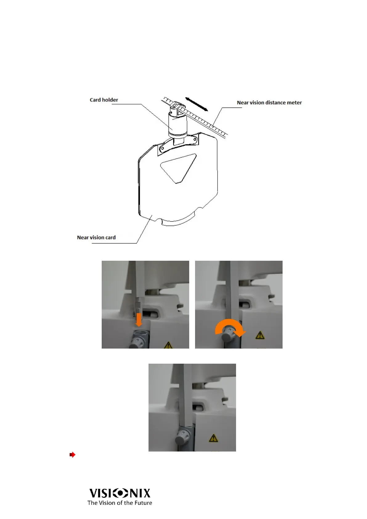 ➢ Insert the near vision rod into the near vision rod mount and firmly fasten with the set