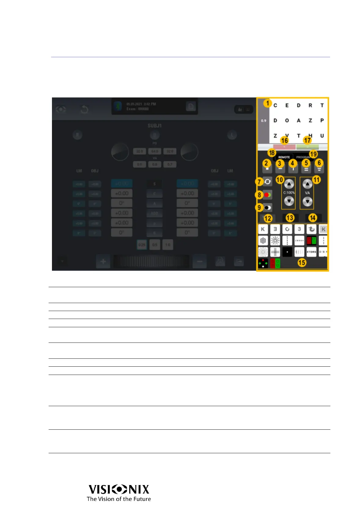 the display unit. The visual acuity is displayed on the left.
