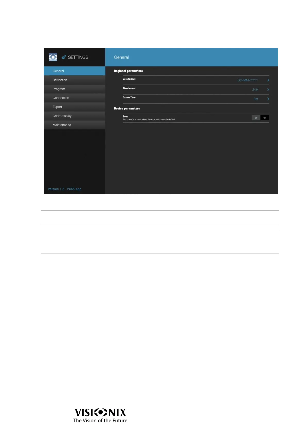 Visionix vx65 - General Configuration