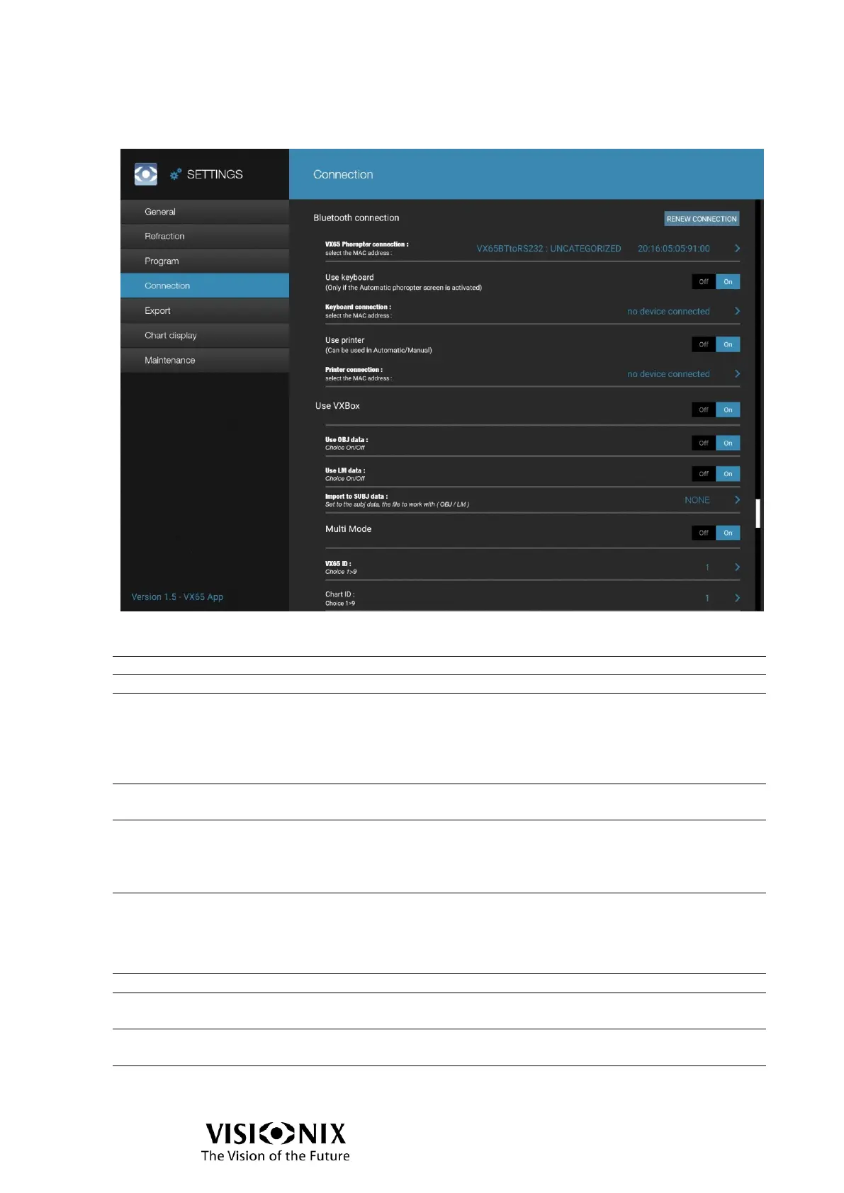 VX65 Phoropter connection