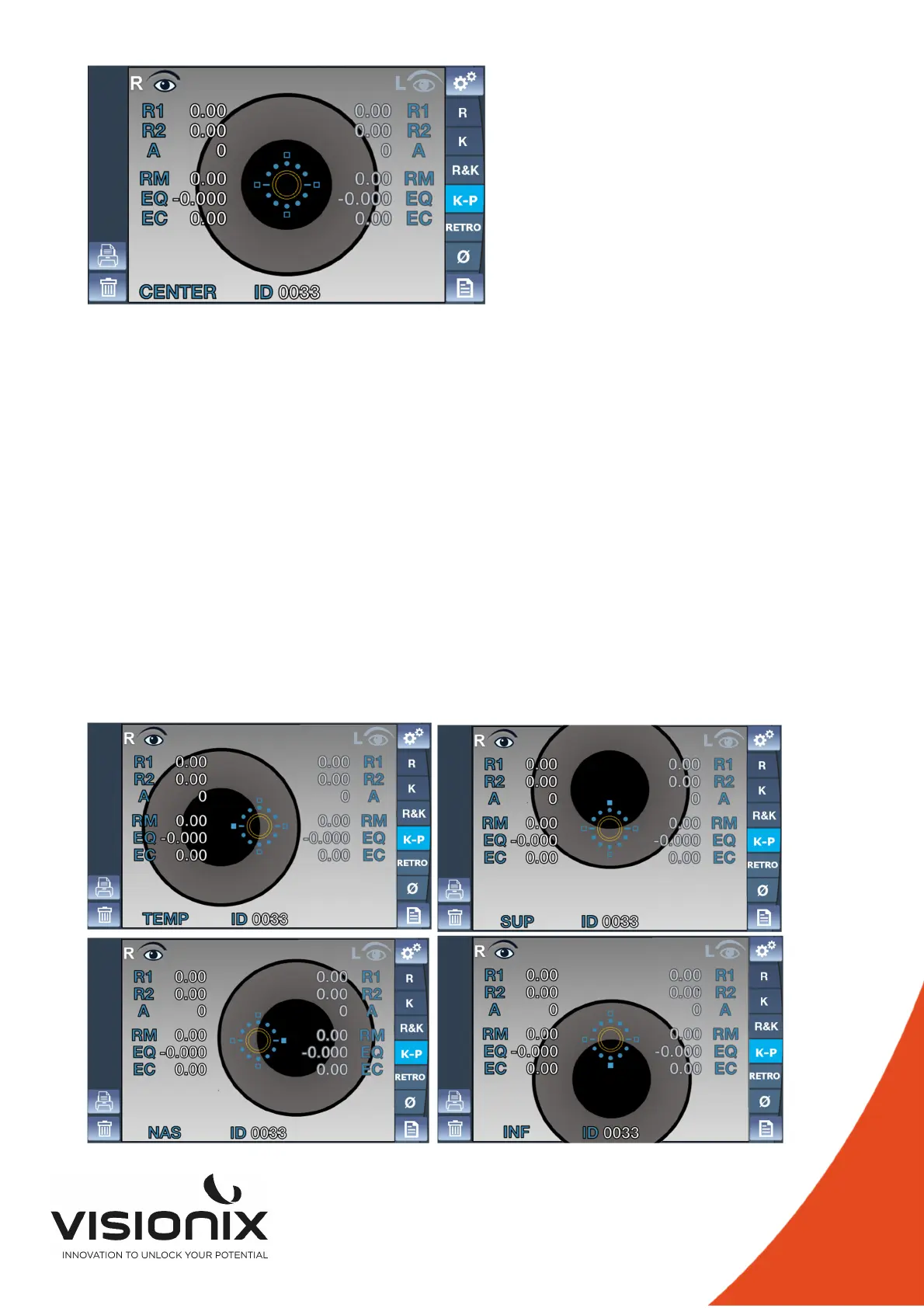 of Mire ring. Each box indicates the proceeding state of measurement on part around cornea. If