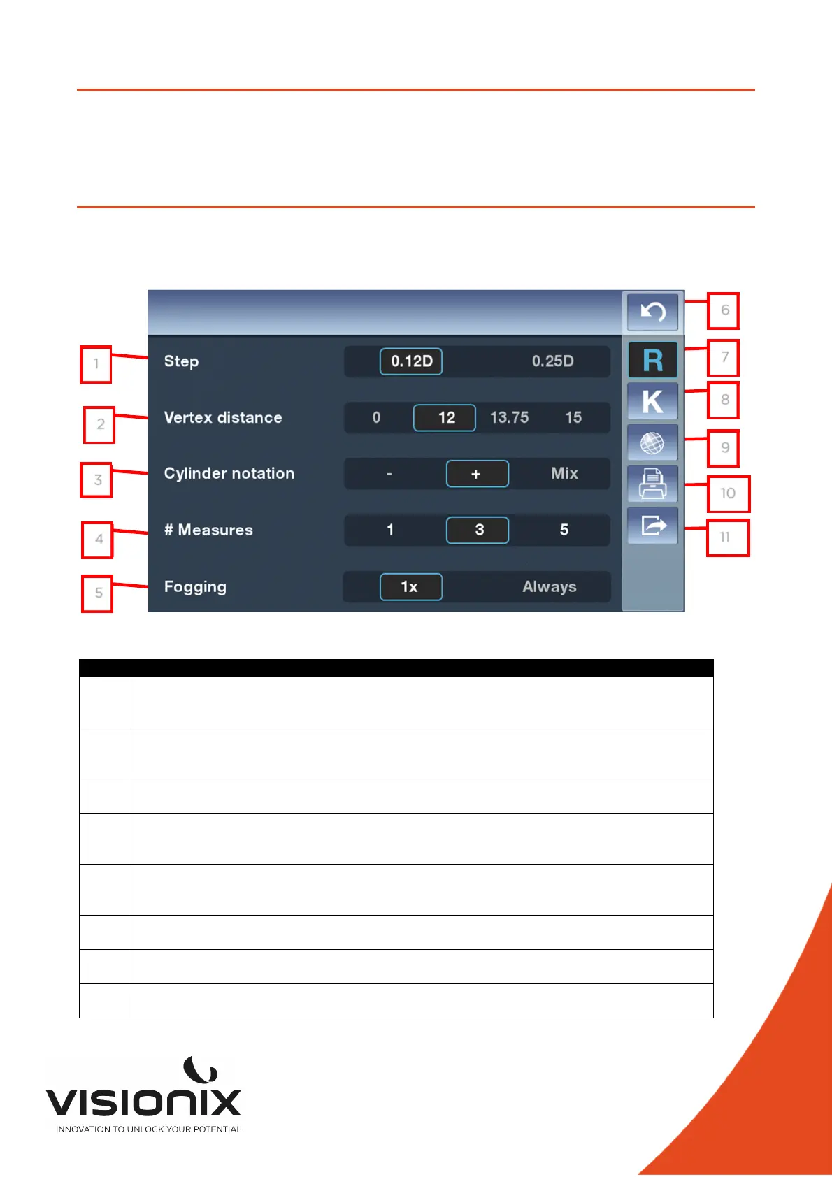 To choose the step of the measurement, two choice possible 0.12 Diopter or 0.25