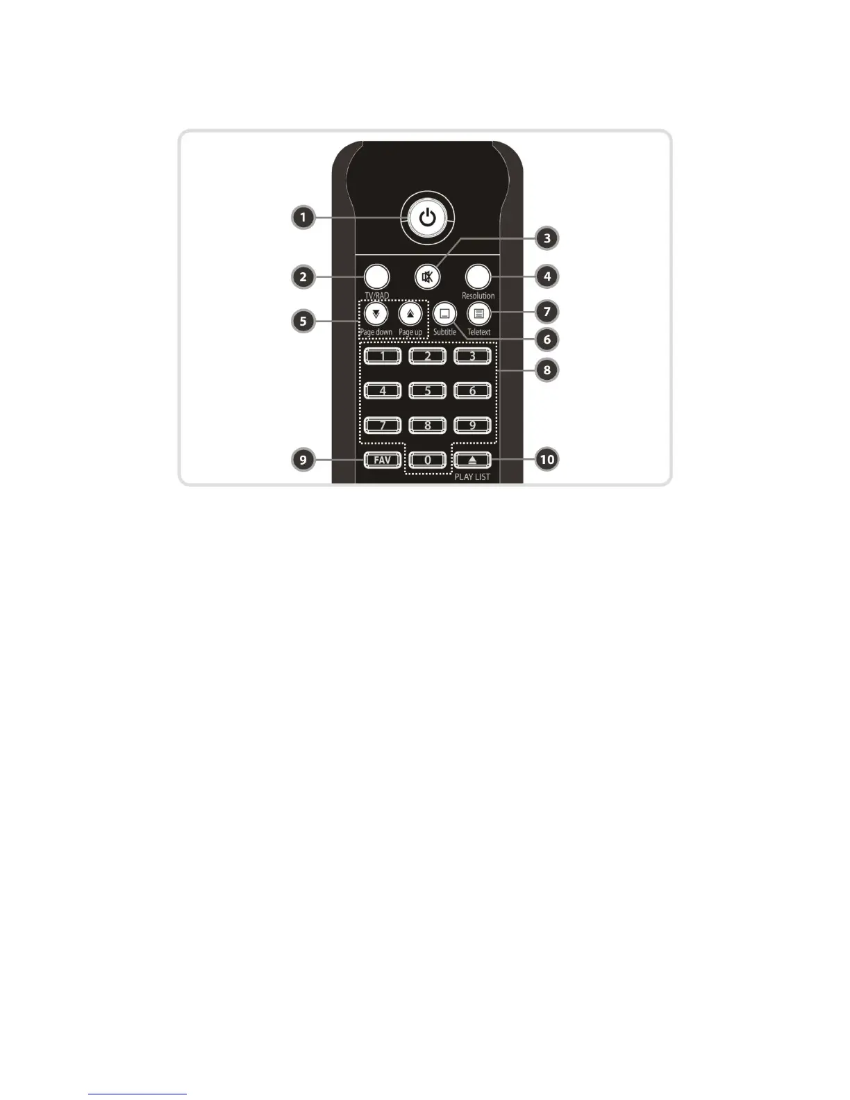 4. Resolution : To select the resolution format. Each time you press the Resolution button, the