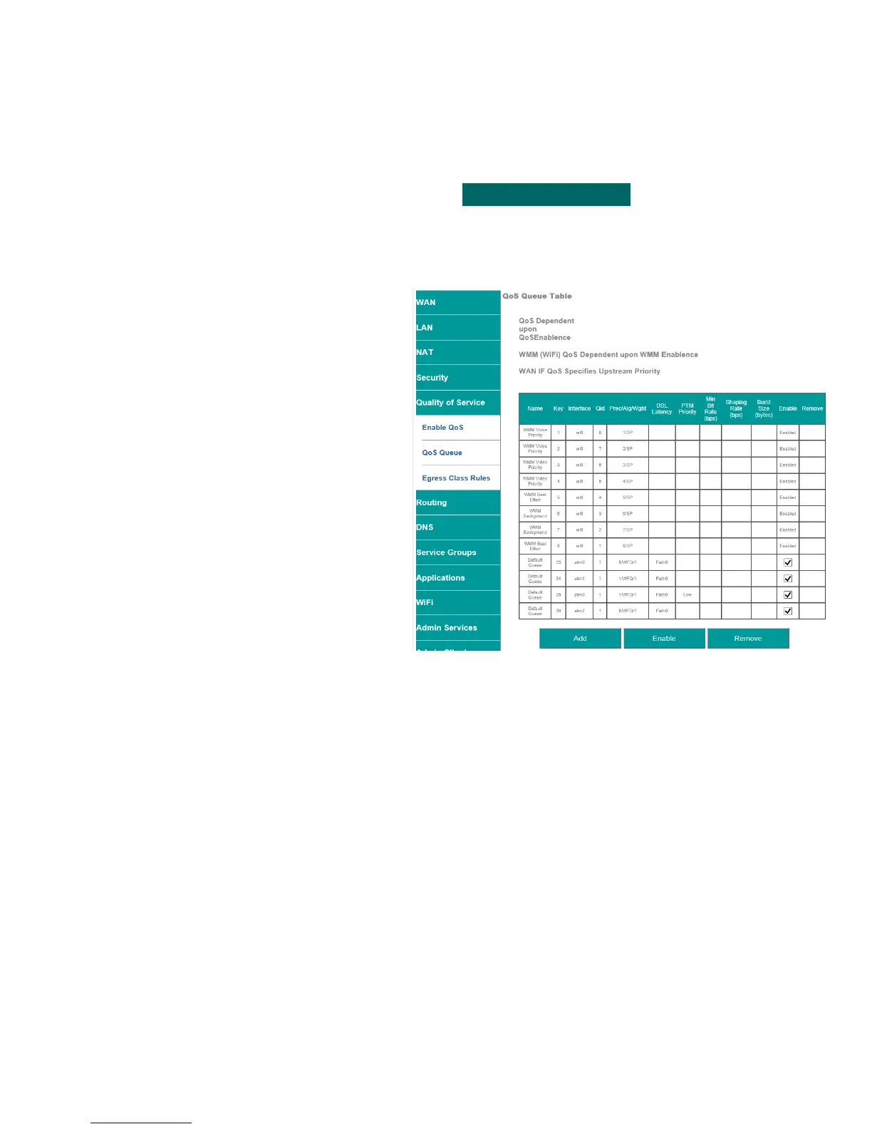 This section will depict enabling / disabling QoS rules for specific WAN Interfaces