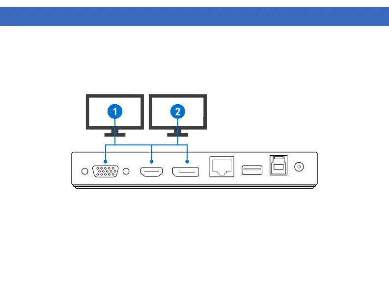 Note: For the VT1100 DisplayLink stream 1, HDMI and VGA are cloned. For 2 independent displays connect