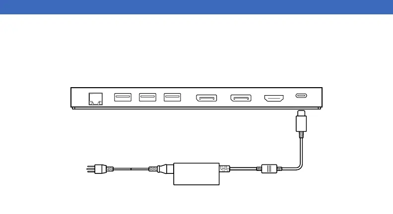 1. Plug the power adapter into the USB-C Power In port on the back of the dock. Connect the other end into a