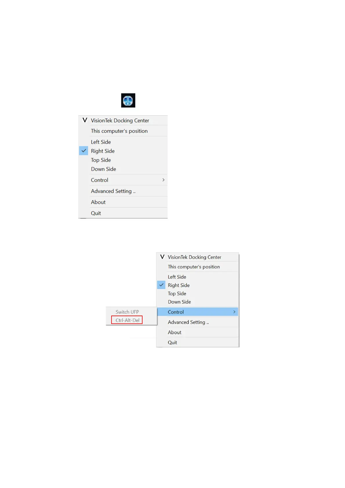 Users could right click this icon to setup the relative position of PCs.