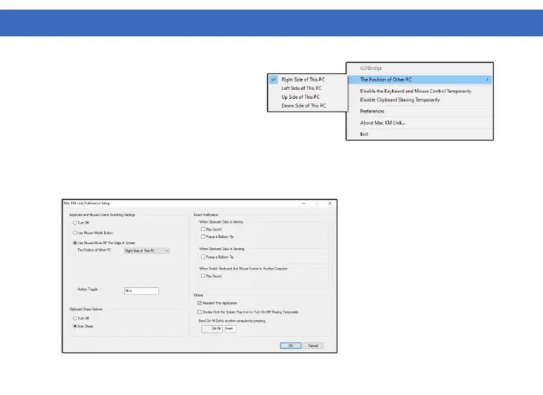 2. Select Preferences to customize Keyboard and Mouse Control Switching, Clipboard Sharing,