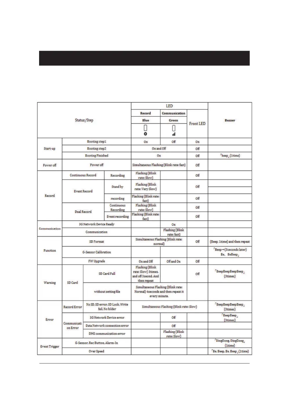VisionTrack VT2000 - Leds &Buzzer Specification