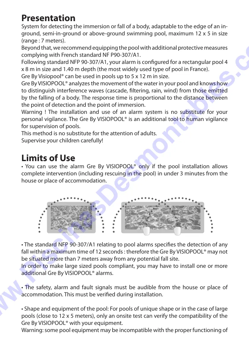Following standard NFP 90-307/A1, your alarm is congured for a rectangular pool 4