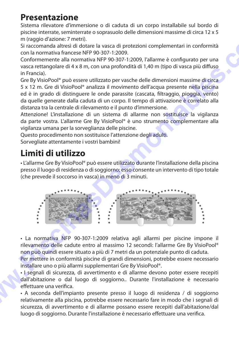 • L’allarme Gre By VisioPool® può essere utilizzato durante l’installazione della piscina