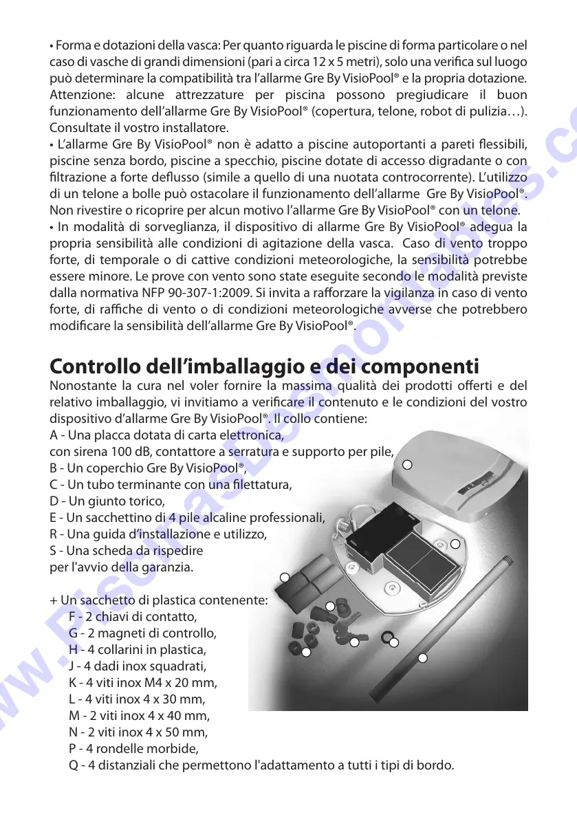 • L’allarme Gre By VisioPool® non è adatto a piscine autoportanti a pareti essibili,