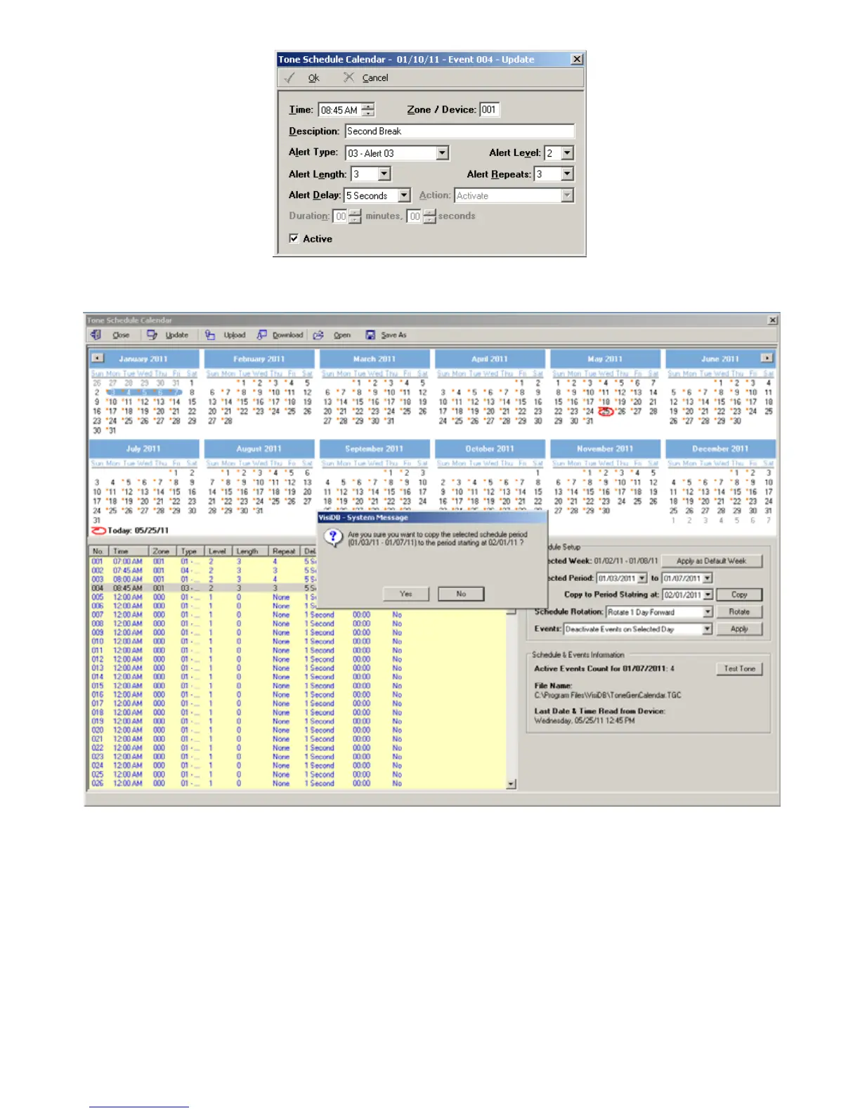 6. If the Copy command is selected, the schedule will be copied from the Selected Period (01/03/2011 to 01/07/2011) to