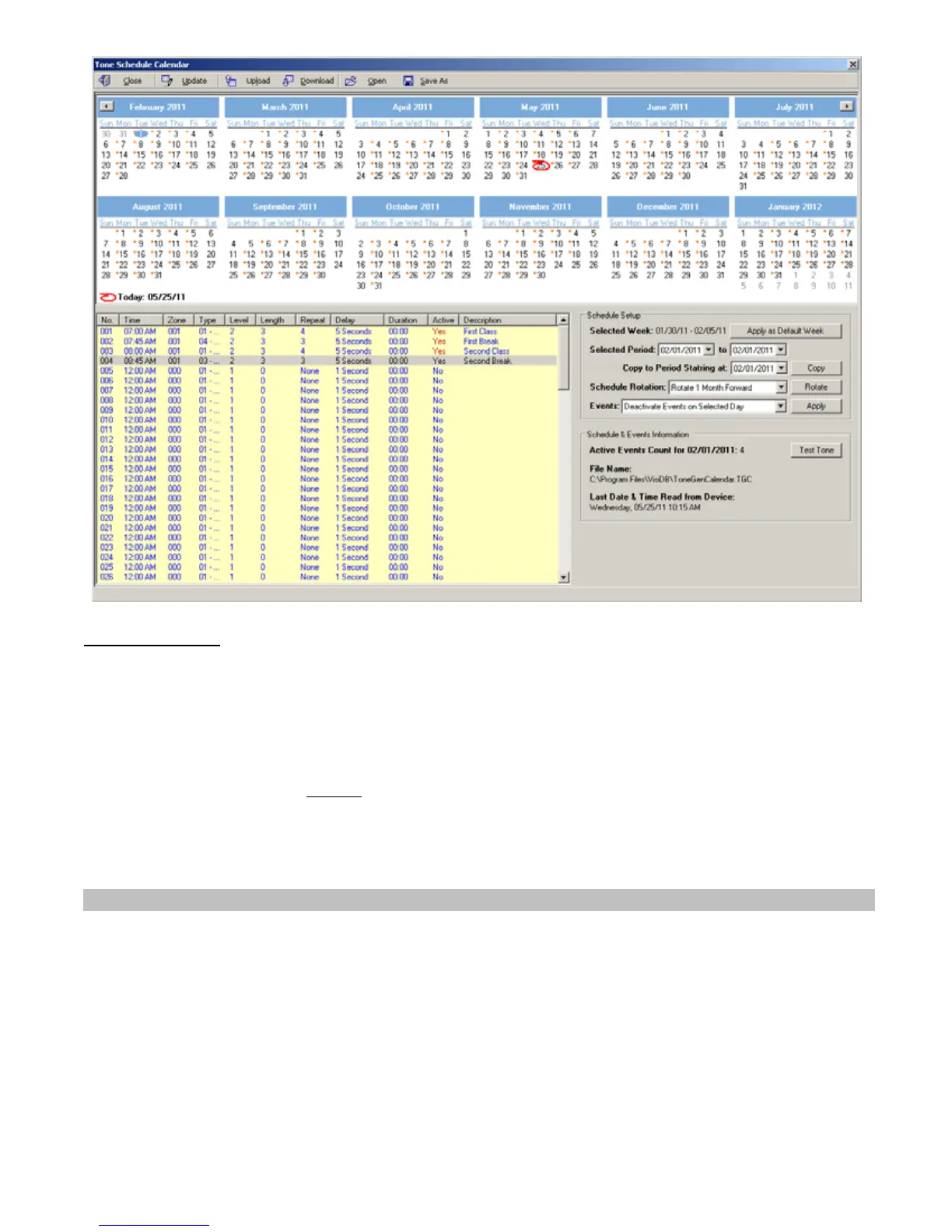 1. When the Calendar Tone & Bell Schedule programming screen is opened, it displays the last file that was edited by