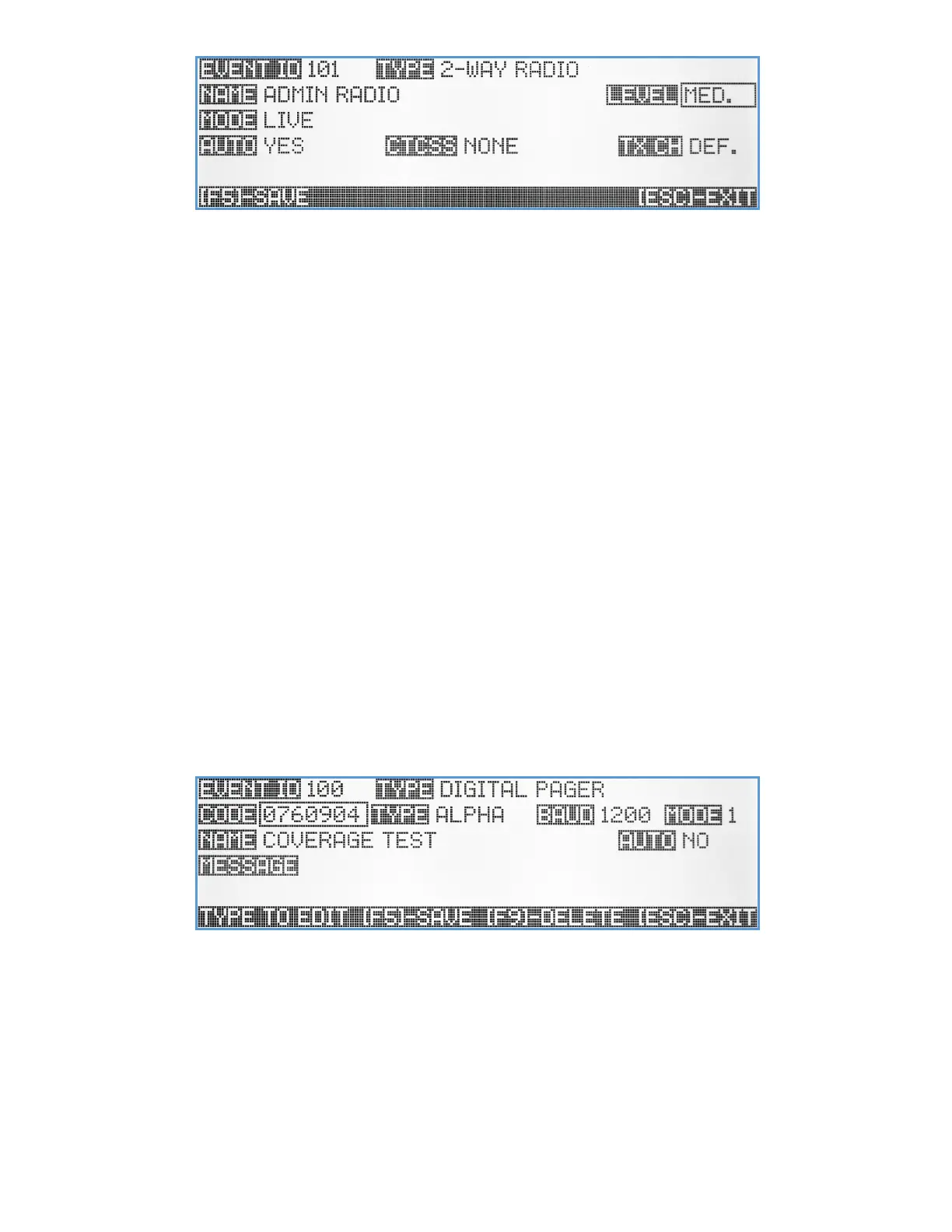 editing an existing event) and hit the [ESC] key to exit the screen back to the previous menu.