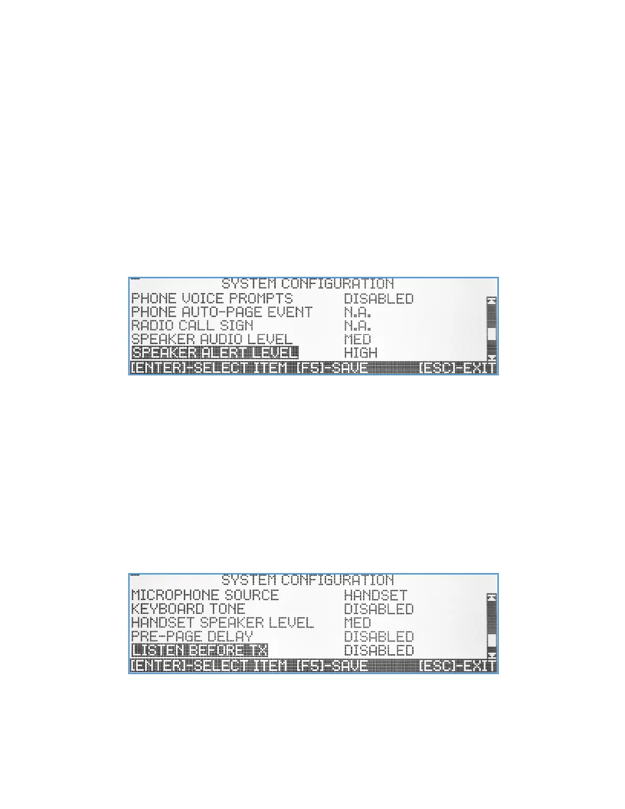 Speaker Audio Level – Set up the default Vs4820 built-in speaker level. The level can later be changed using the volume