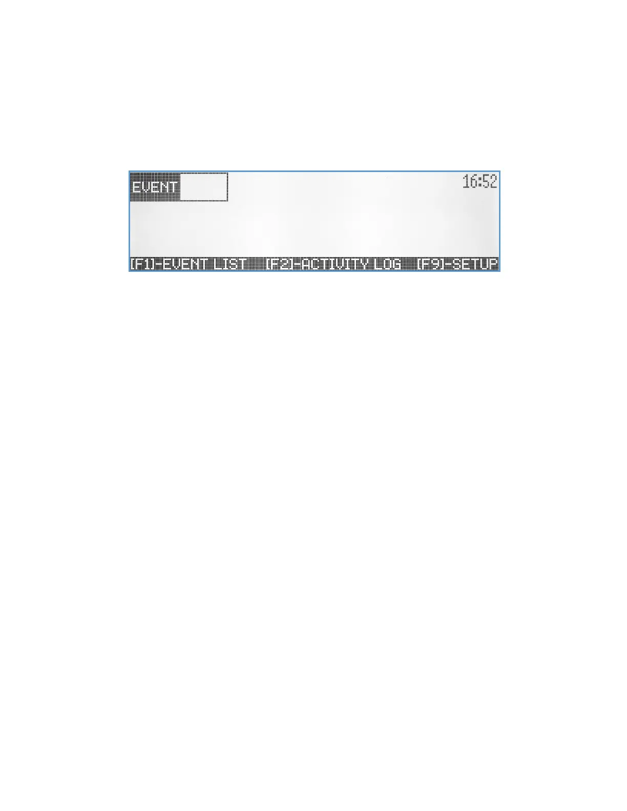 user: [F1] to select an event from a list of all active events, [F2] to display the latest system activity and [F9] to access the