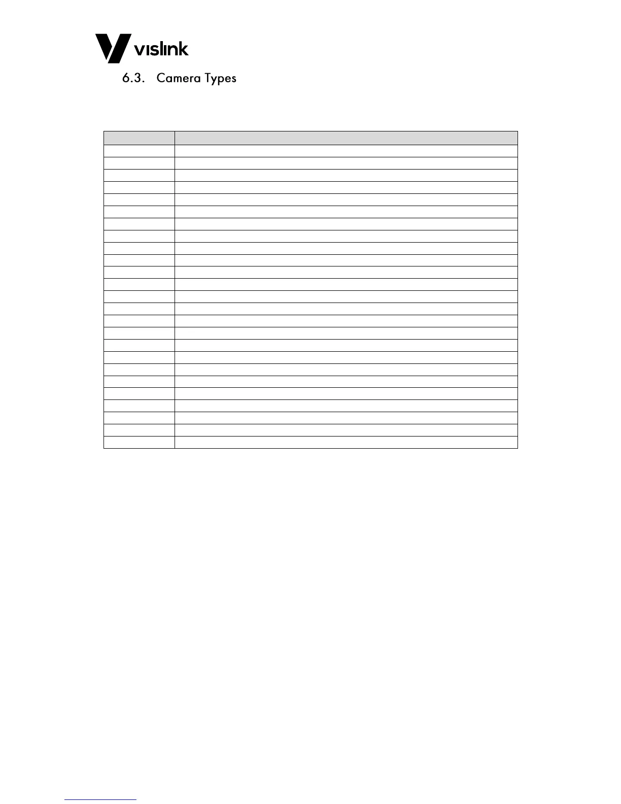 Table 6-2 shows the camera type menu for you to select from.