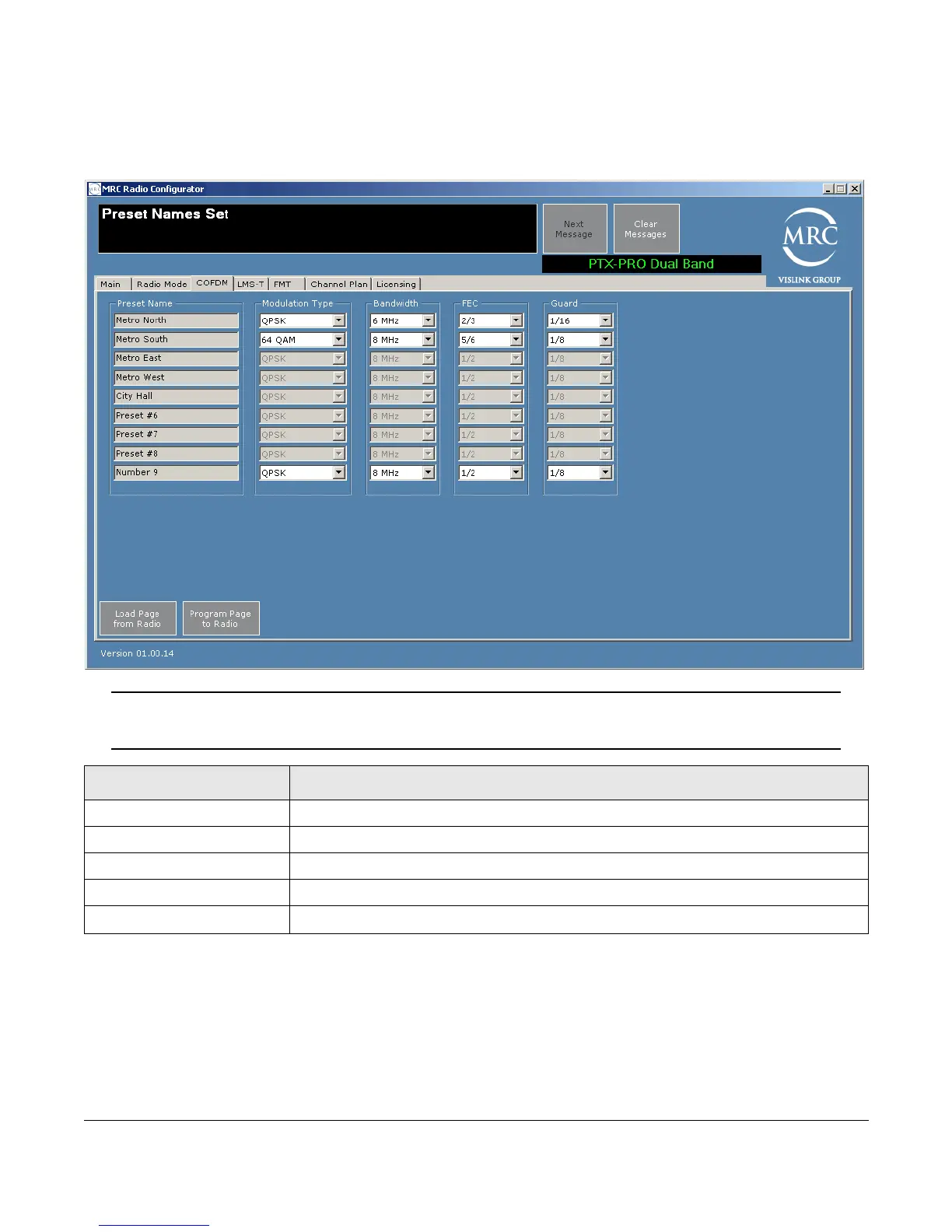 Load Page from Radio—To load parameters for this page from the PTX-PRO, click on this