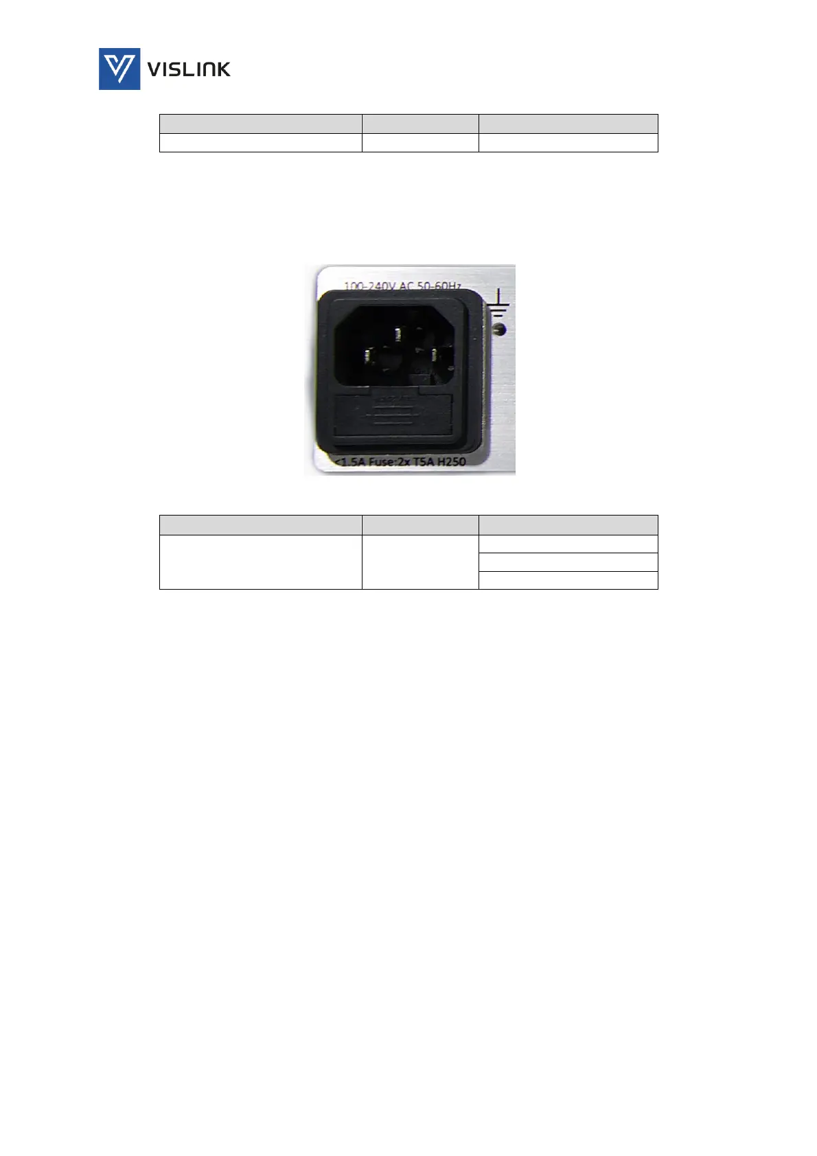 A standard IEC 3-way connector is provided for the 100-240V AC power supply.