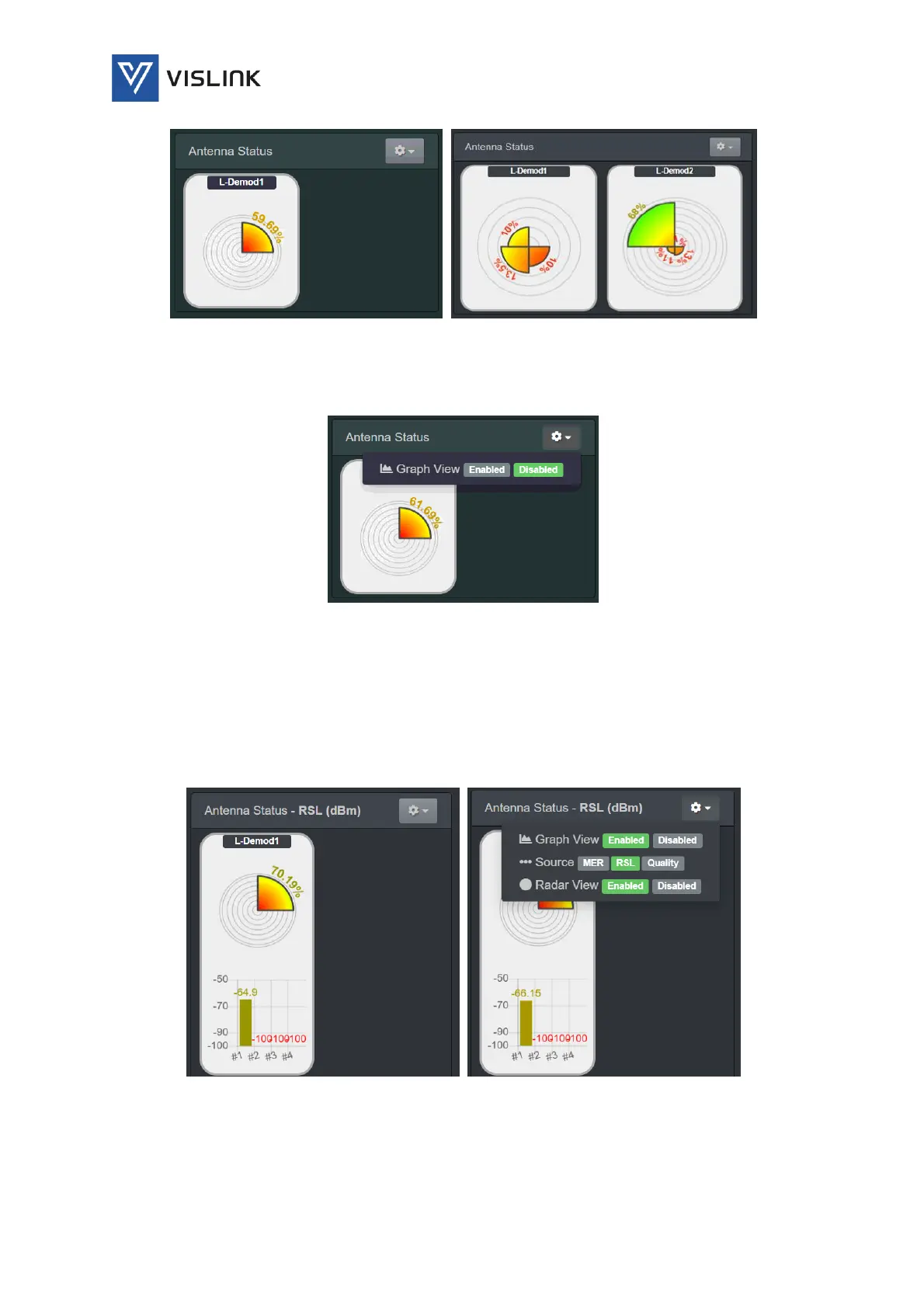 Source – enables/disables display a graph of either Quality (%), RSL (dBm) or