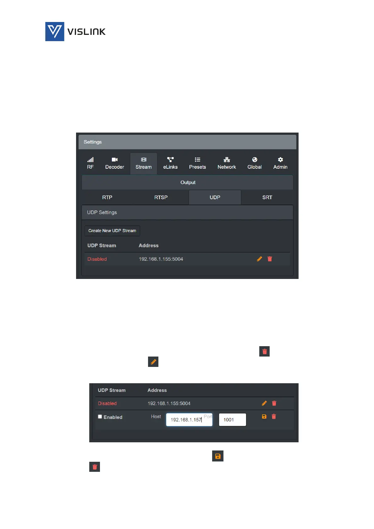 Create New UDP Stream – clicking on this button enables the creation of a new