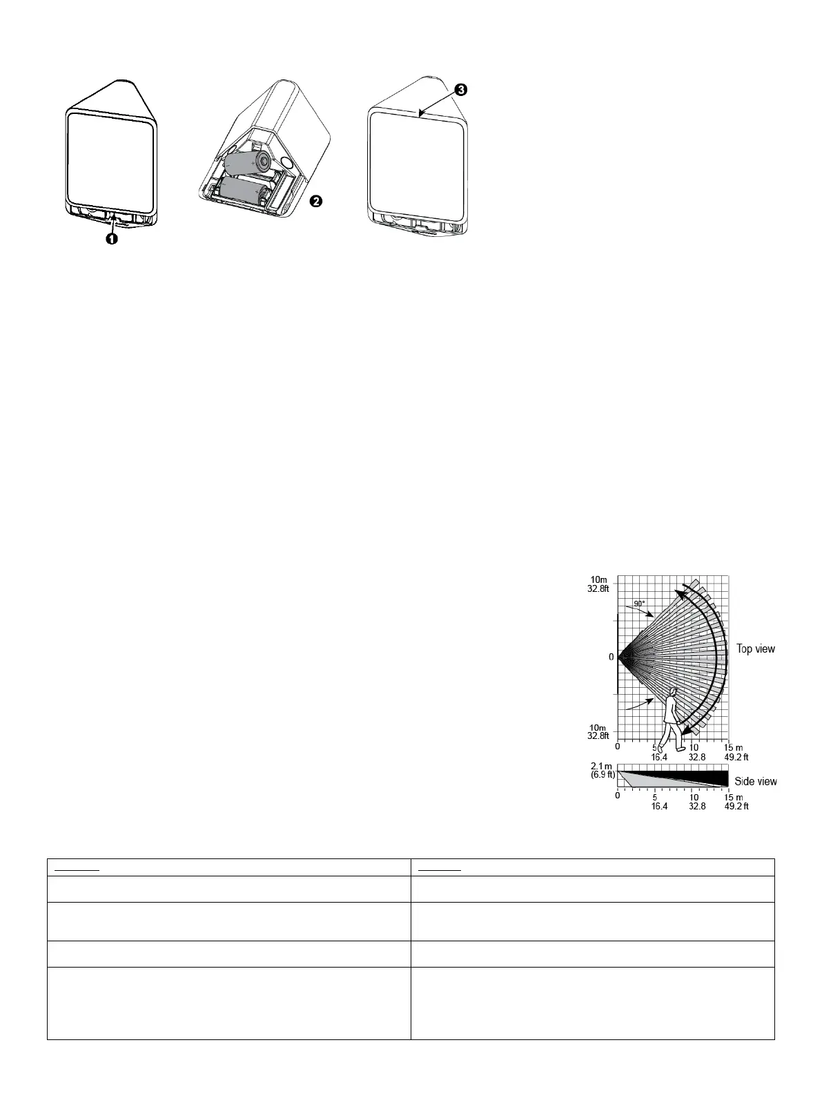 Walk across the far end of coverage pattern in both directions. The LED should light for 2-3 seconds