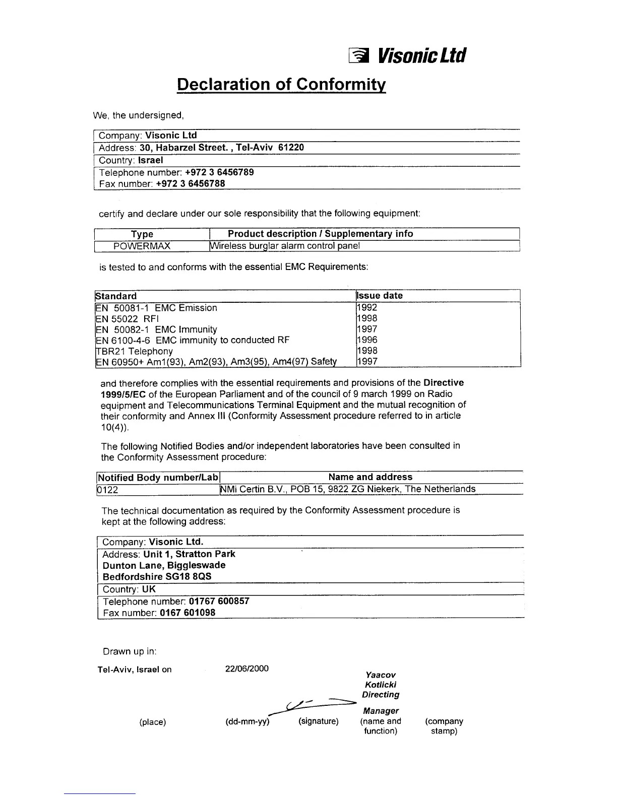 Other manuals for Visonic POWERMAX
