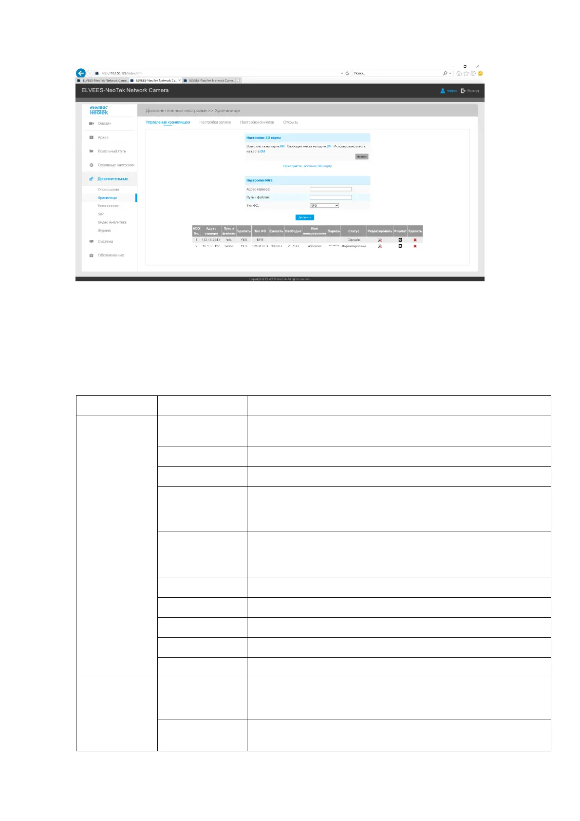 No more than 5 NAS servers can be connected to one camera.