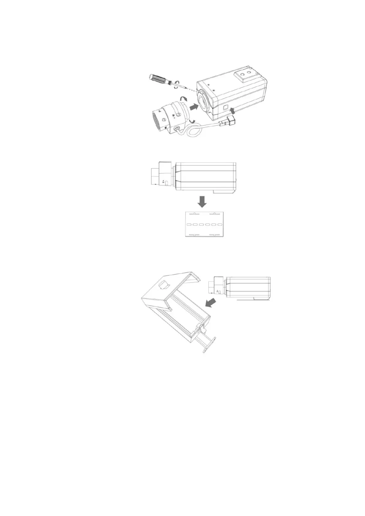 Step 1: Install the lens and iris control cable, then tighten the screw;