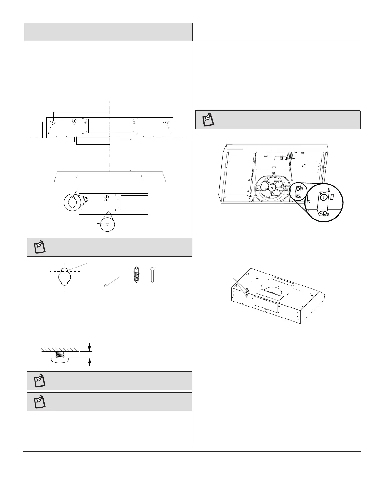 screw heads and wall to slide range hood into place.