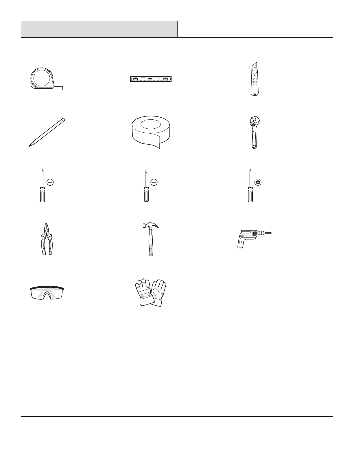 TOOLS/MATERIALS REQUIRED (NOT SUPPLIED)