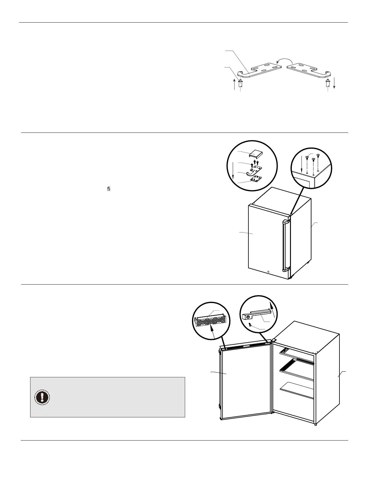 □ Install the door (C) onto the cabinet (I).