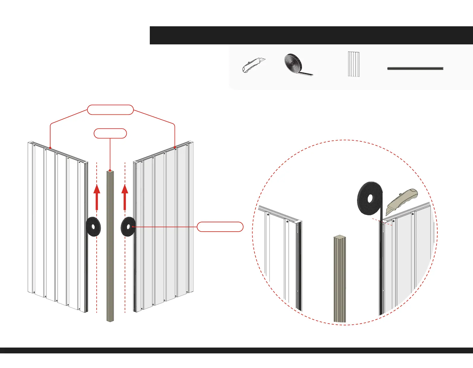 1) Use Foam Gasket (DC 1880) and adhere to Panel edges (DC 3544)