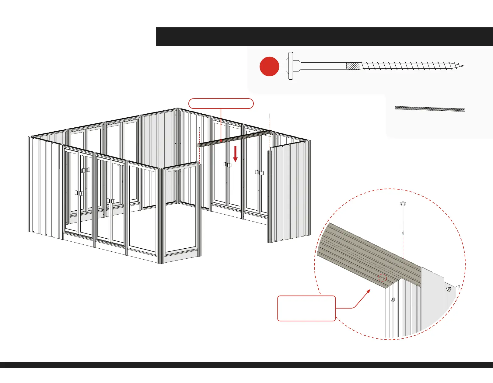 1) Fasten the Header (DC 4087) to Posts, as shown.