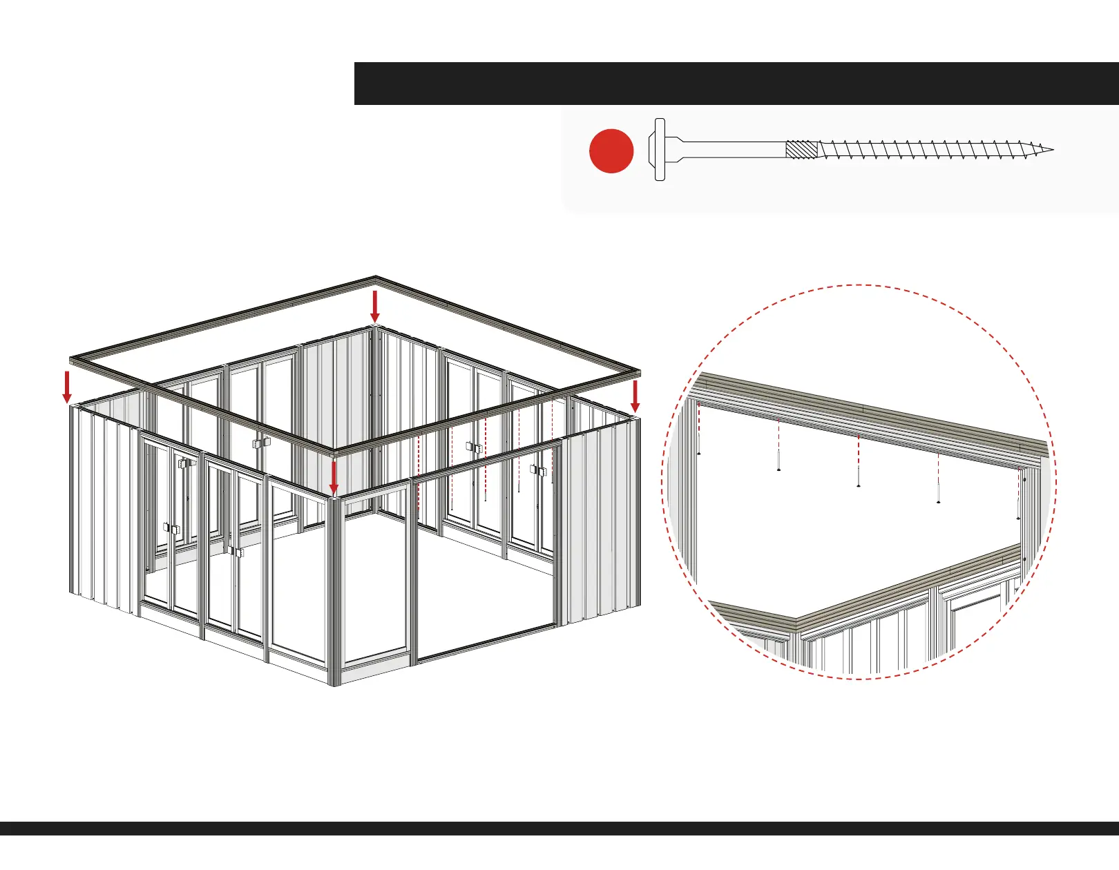 1) Carefully place the Truss Frame Assembly on top of the structure.