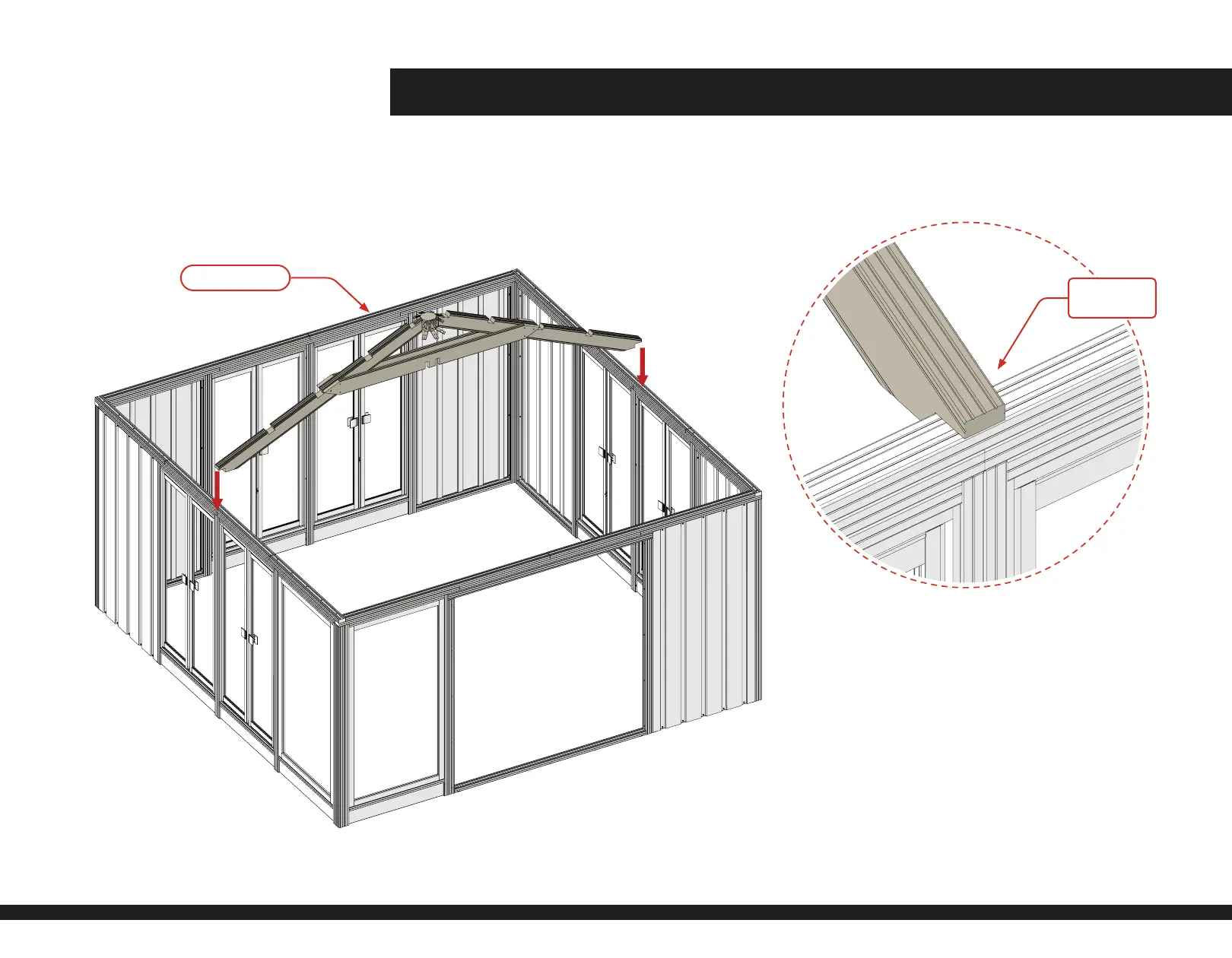 1) Carefully ip the Rafter Assembly over and place on Truss Frame as shown.
