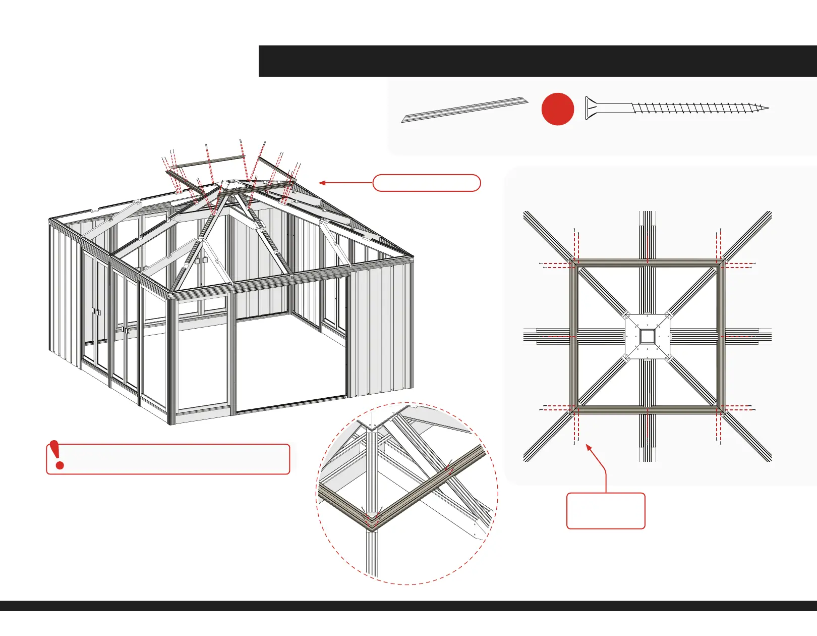 1) Place and fasten the Upper Mid Strappings (DC 4136) to the Rafters.
