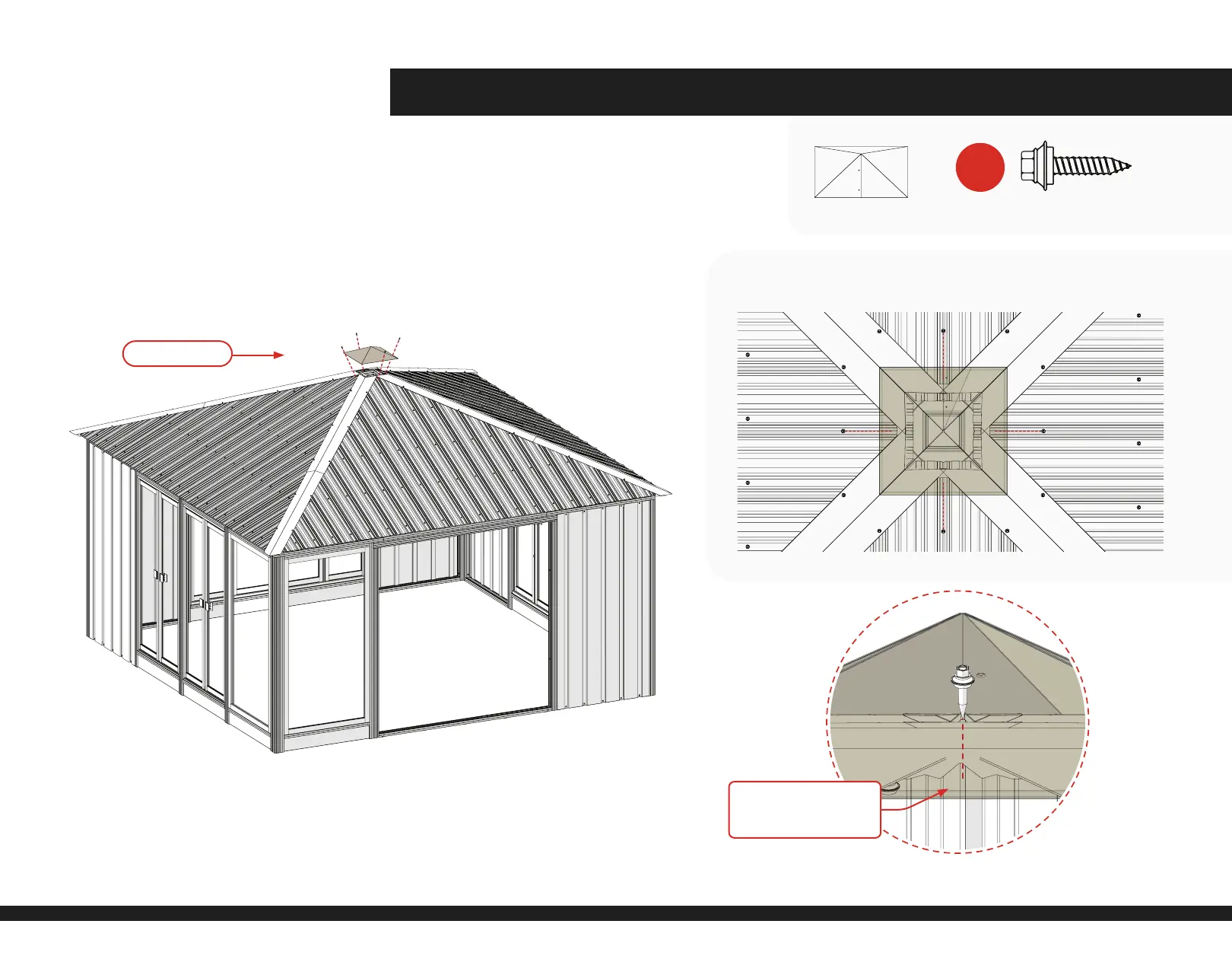 3) Secure the Peak Cap with screws on each side through the Cap and into the Roong.